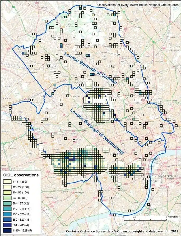 GiGL Observations in Camden & Westminster. Map by Gianfranco