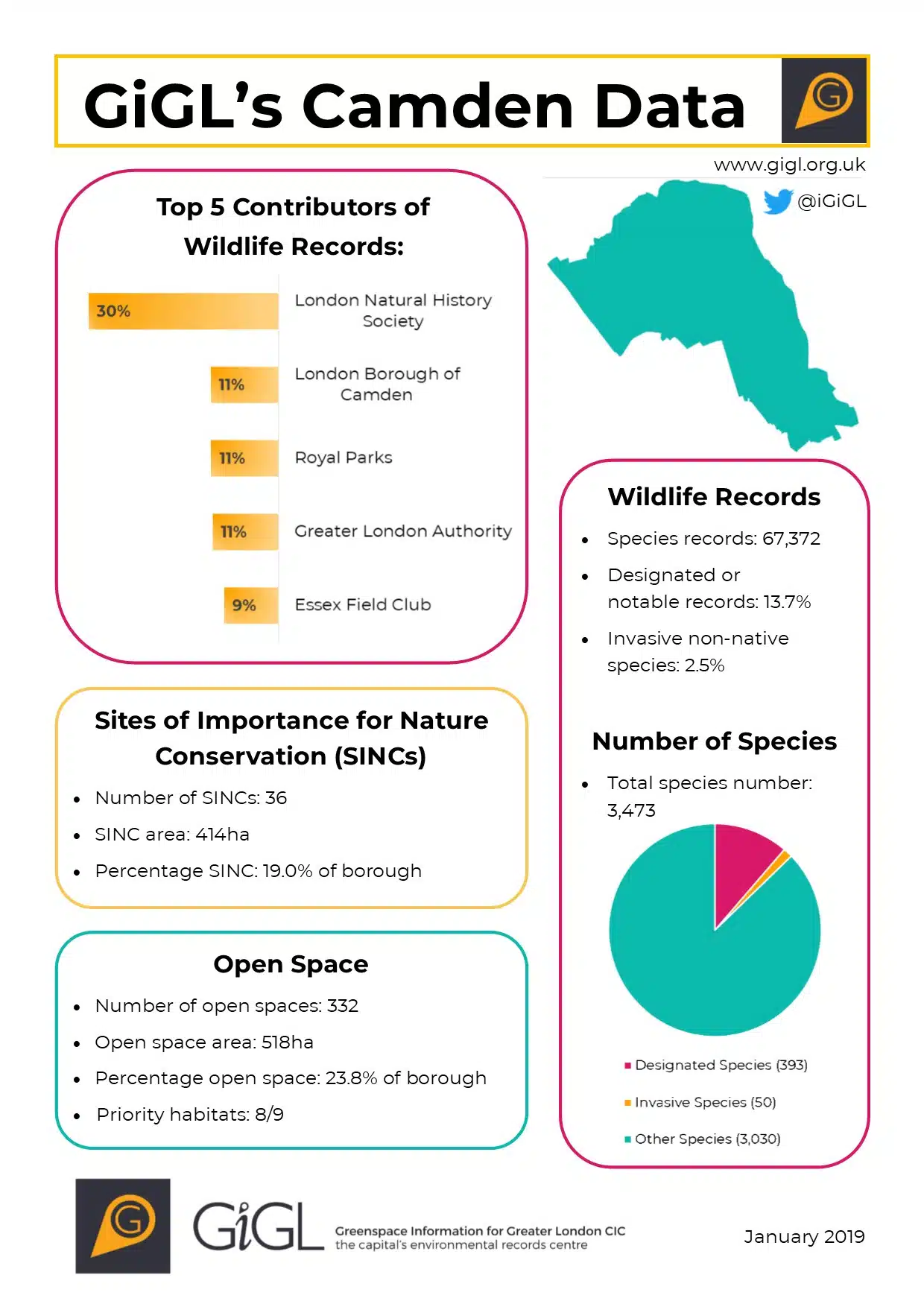 One of the ways we are communicating these fact sheets to a wider public audience, is on our #GiGLBoroughCoutdown borough guessing game. Every Wednesday at 9am a new borough outline is released and our followers then have up until 5pm to guess which borough it is, upon which the corresponding factsheet is released; it’s a lot harder than it seems!