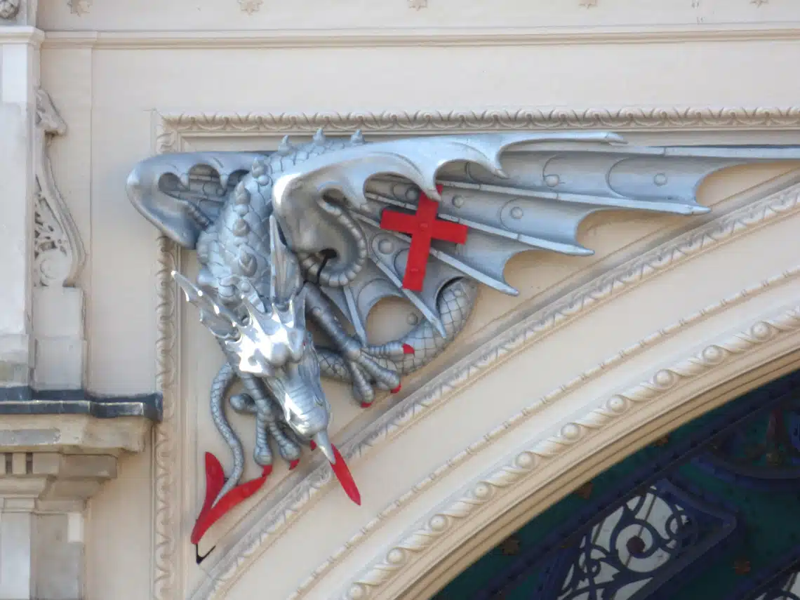 Dragons are known to guard high security vaults at Gringotts Bank, Diagon Alley, London. Luckily they escape only very rarely, as is pictured here in 1998 (c) Harshlight CC BY 2.0