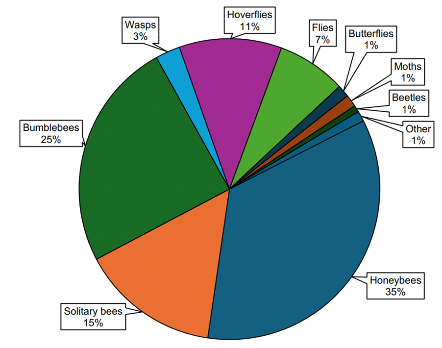 Not all pollinators are equally efficient. Some, like long-tongued bumblebees, are superb at pollinating deep flowers such as foxgloves. In London, you are most likely to see species such as the buff-tailed bumblebee (Bombus terrestris), common carder bee (Bombus pascuorum), solitary bees such as the common yellow-faced bee (Hylaeus communis), and hoverflies like the marmalade hoverfly (Episyrphus balteatus).
